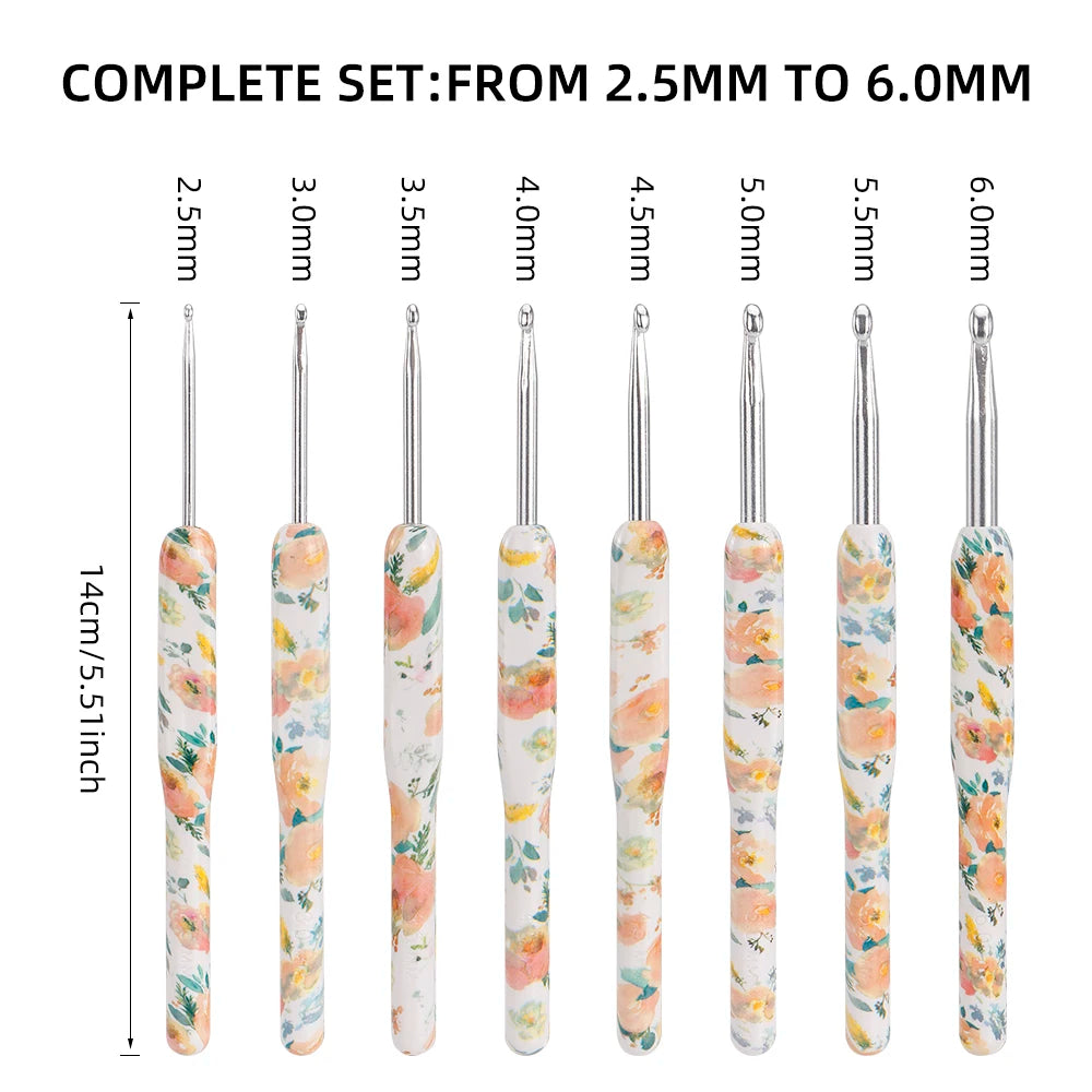 Flower Aluminium Crochet Hook Needles 2.5-6mm 8pcs Set
