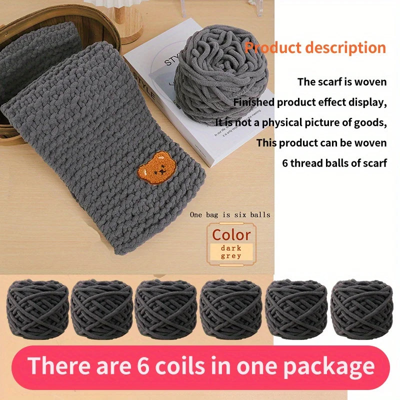 Thick Chenille Fluffy Soft Yarn Balls 6 Pack